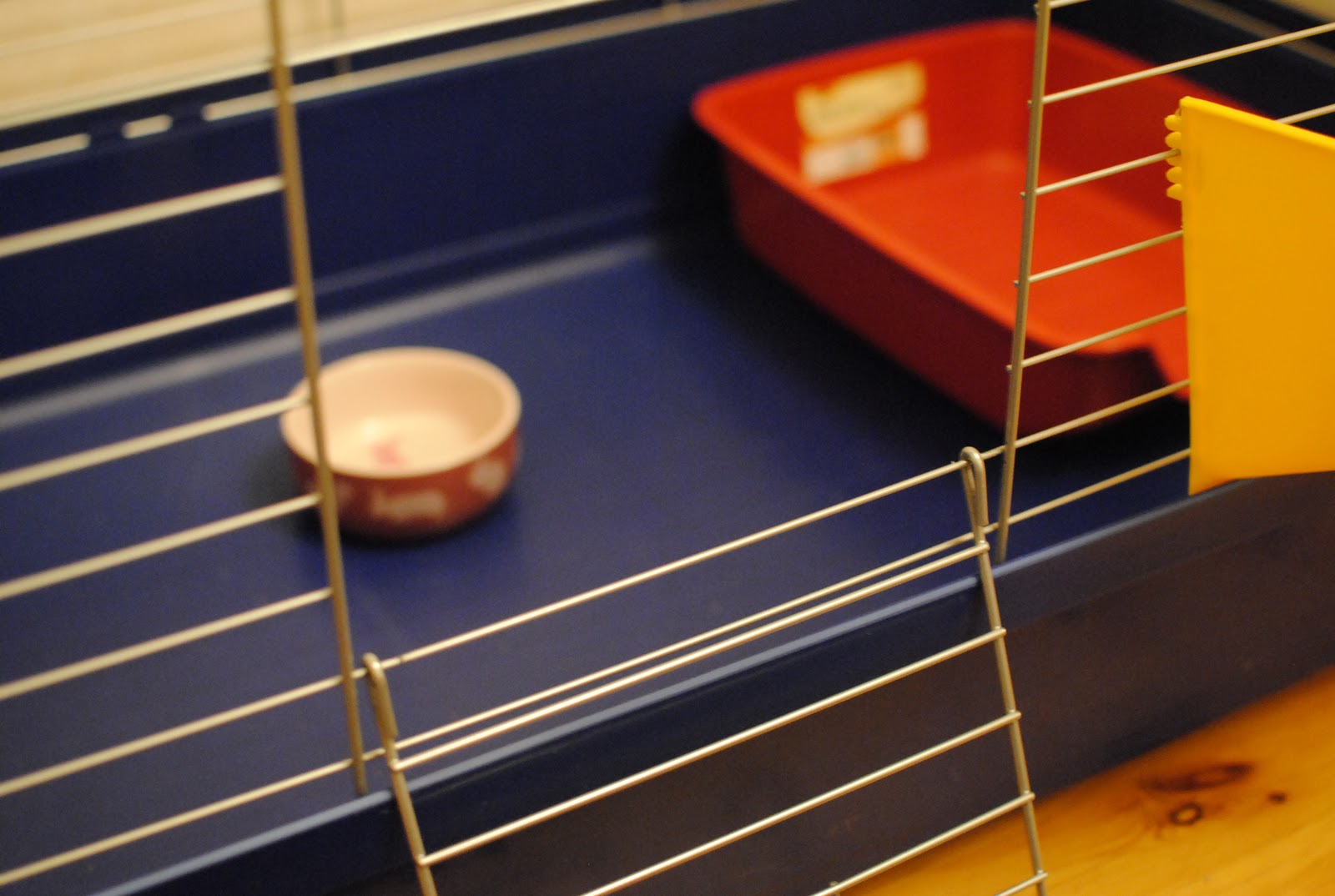 Tässä olisi nyt häkistäkin muutama kuva. Ihan hyvältä vaikuttaa, semmoinen kuin sen ajattelinkin olevan. Vähän kolisee sivuilta (mietin jo mikä ääni siitä lähtee kun kani alkaa riehumaan...), mutta jos kulmat kiinnittää tukevammin toisiinsa niin ei kolise "yhtään". Pienellä fiksauksella hyvä tulee. ;)