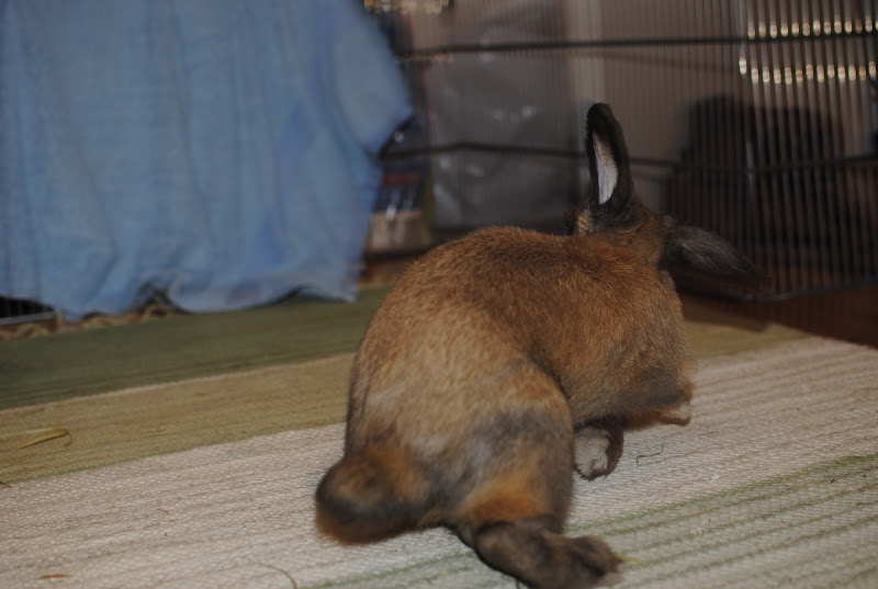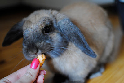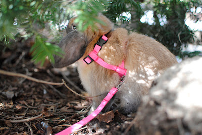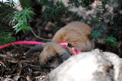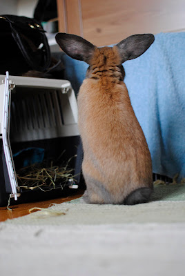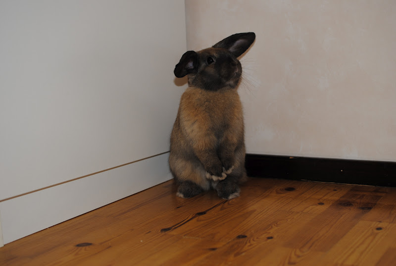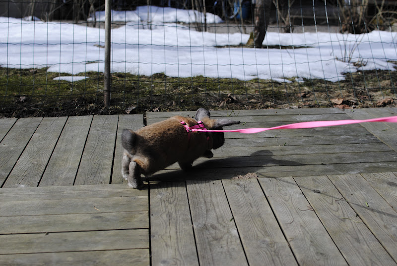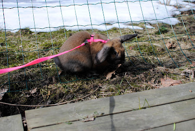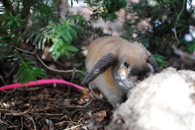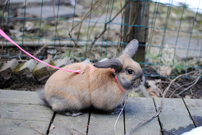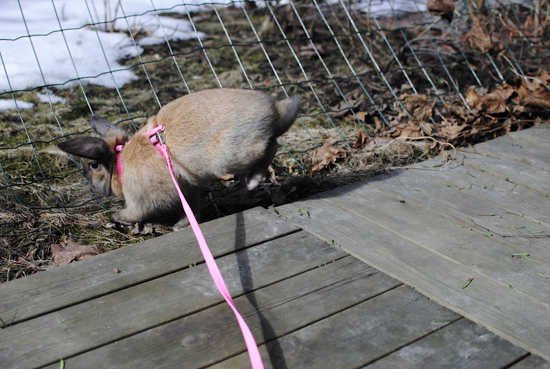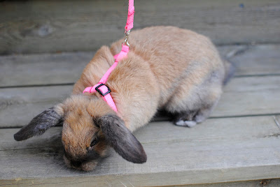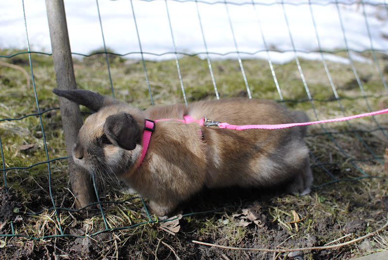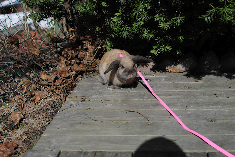 Yritettiin myös vähän totuttaa koiraamme Vinjaan, mutta ihan vielä ei siinä onnistuttu. Olisi nimittäin paljon helpompaa jos koira olisi tottunut kaniin. Olin Vinjan kanssa takapihalla ja siskoni raotti pihan ovea, jotta Mauski (koiramme siis jos joku ei vielä tiedä) näki Vinjan. Mauski oli sekä valjaisiin että pantaan puettu ihan varmuuden vuoksi. Heti kun ovi avattiin ja Mauski näki Vinjan niin alkoi hirveä räyhääminen... Sitä kesti niin kauan kunnes ovi suljettiin. Voisi kuvitella, että Vinja meni moisesta metelöinnistä ihan paniikkiin, mutta ei todellakaan! Koko aikana Vinja tuskin edes huomasi, että koira haukkuu sille melko ärhäkkäästi. :D Joten ainakin Vinjan osalta totuttaminen on helppoa.