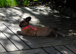 Viime päivinä on ollut todella lämmin ja Vinja pääsikin nauttimaan auringosta tiistaina kun vein sen pienen tauon jälkeen taas takapihalle juoksemaan. Toinen oli ihan innoissaan. :3 Yritin toisella kädellä hieman kuvata samalla kun toisella pidin flexistä kiinni ja vahdin ettei naru sotkeudu puutarhakalusteisiin jne. Eli kuvaaminen oli hieman hankalaa, mutta tässä kuitenkin niistä osa: